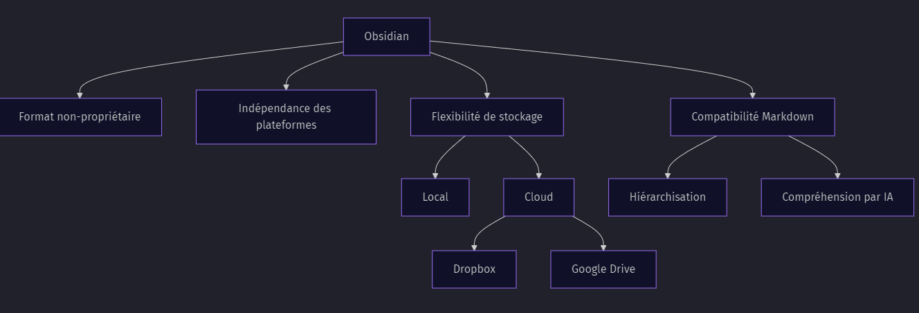 - Format non-propriétaire : Utilisation de fichiers texte en Markdown (.md)